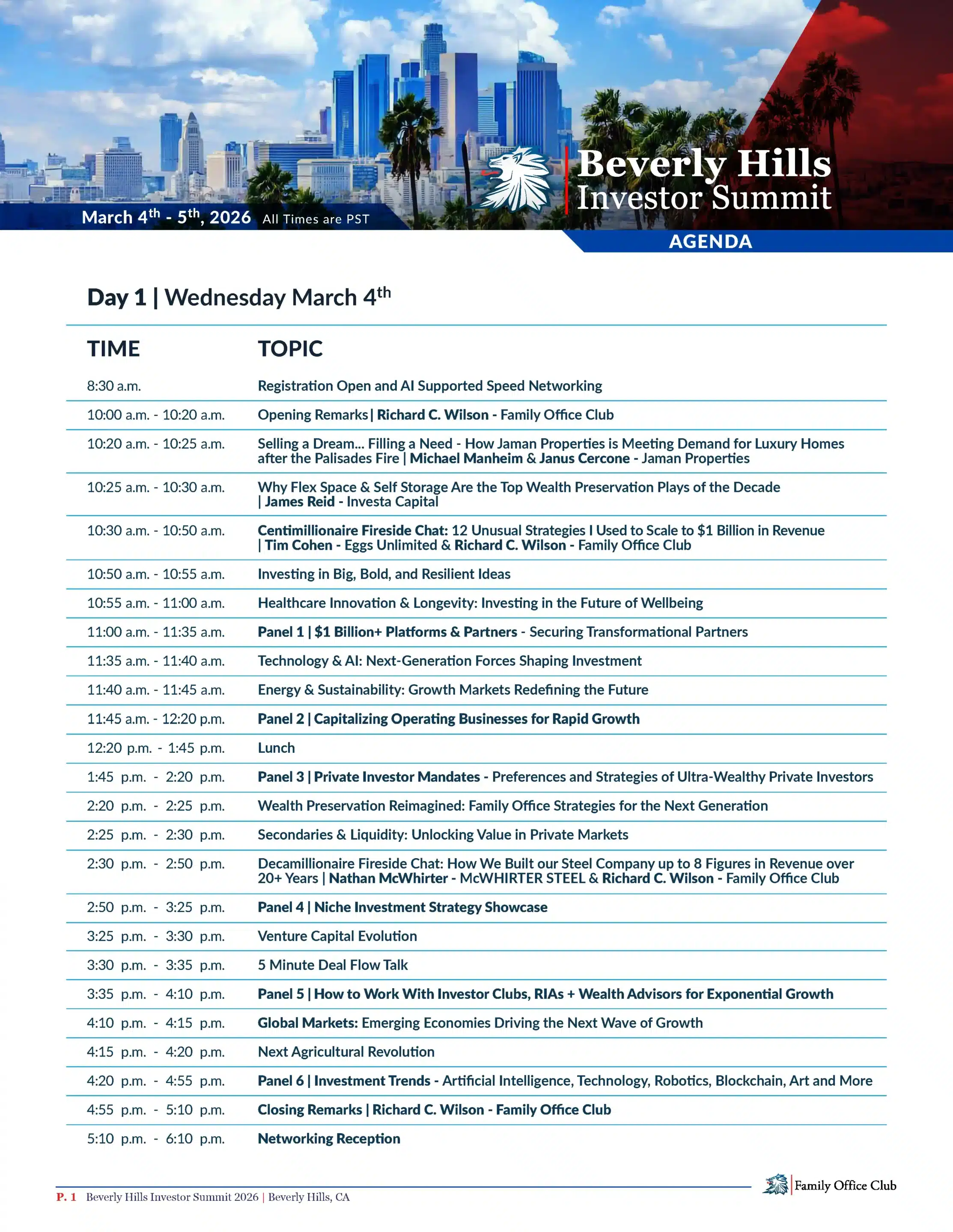 Our Beverly Hills Super Summit will feature 250+ investors, 75+ speakers on stage, 7 networking sessions, 600+ attendees, and will be the #1 investor club event to attend in 2026 in California.
